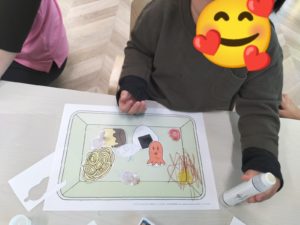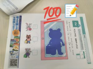 途中間違いにも気づき消しゴムで消し「できた~😍」と嬉しそうです。集中して(; ・`д・´)、完成させていますね!