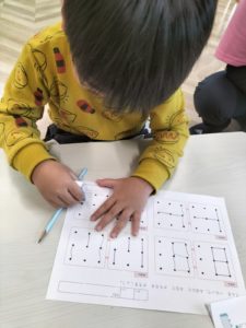 ちょっと難しいいプリントもイラストを見ながら、点と点をつなぎ見本と同じ絵を描くプリントにも挑戦!