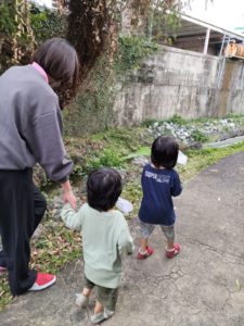 お昼寝の後に、近くのせせらぎ遊歩道でお魚探し🐟☆
