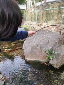 網を使ったり、手作り釣り竿を使ったりと