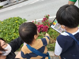 お友達に「見て、お花があるよ~🌺」と