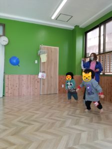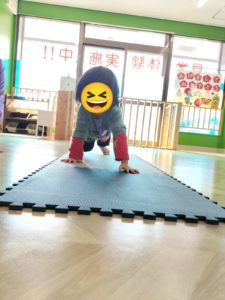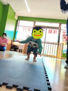 カエルさんのようにピョンピョンとジャンプ🐸したりワニさんのようにズリズリ🐊這いずったりして、体をたくさん動かして体中でバランスをとって遊びました😄