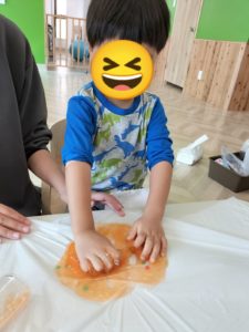 びろ~んと伸びるスライムを満面の笑みで見ててこちらも笑顔になっちゃいました🥰💚