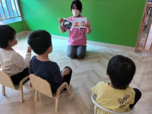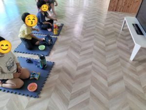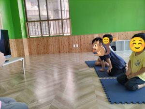 の声掛けでみんなマットのとこで座って待っていますね👏パチパチ~👏。