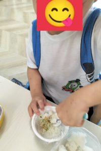 ふりかけをまぜまぜ