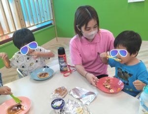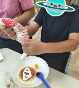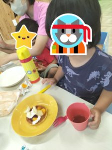 見つけた材料でおやつ作り♪🥞