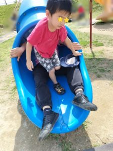 長い滑り台もへっちゃらさ(^^♪