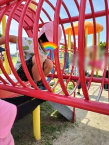 「よっしゃー!」と飛び跳ねて遊具へとレッツゴー💪🌈