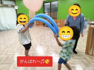 あれ?風船を割ろうと頑張っているお友達発見👀!