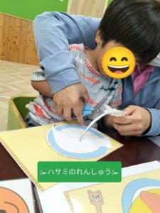 スタッフと一緒にチョキチョキ✂上手にできました✨