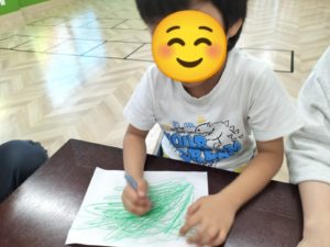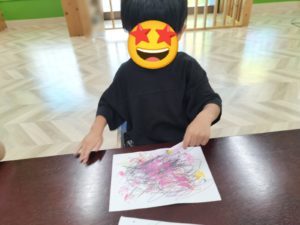 工作の内容はクレヨンでお絵描きをして💨
