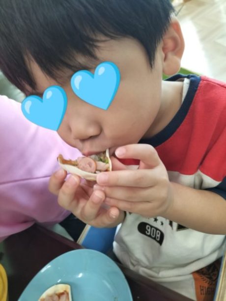 「ピザできたよ~」の合図で手洗いをして
