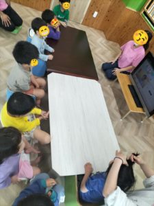 スタッフが「日課始めます」と声を掛けると、皆ピシ―っと座ってしっかりと話を聞くことが出来ました。