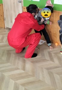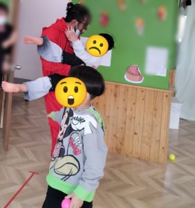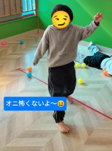 余裕そうにオニの顔マネをするお友だちも😂
