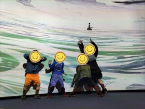 スクリーンに映った魚をタッチしたり🐟