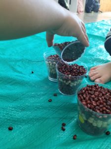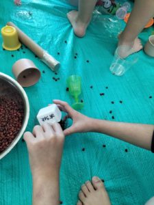 ペットボトルに豆を集めてみたり、遊びの展開が得意なkidsは